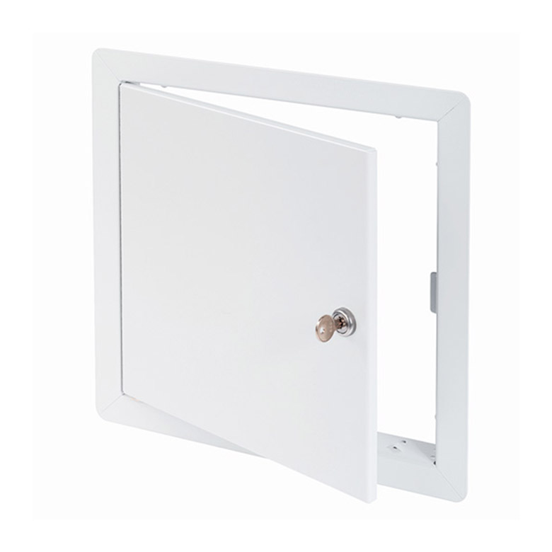 The drywall bead flange is not exposed once the drywall compound is applied. The key operated cam latch ensures a higher level of security.